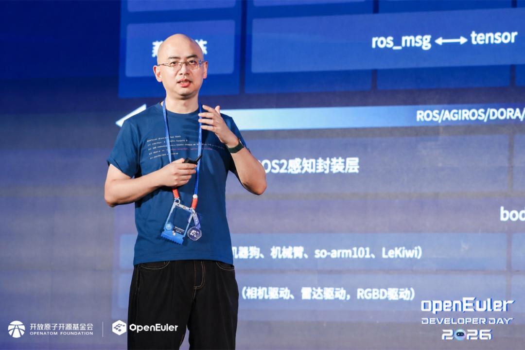 开放原子开源欧拉技术委员会主席胡欣蔚发表《openEuler技术前沿与展望》主题演讲。他从超节点OS,具身智能、开发者工具升级,再到当下最关心的Agent落地企业应用挑战,全方面介绍了openEuler的最新技术进展。openEuler面向超节点实现从硬件管理到AI算力编排的跨越,在易用性、可靠性和低时延方面持续提升;openEuler Embedded 26.03创新版本基于Intelligence BooM孵化IB-Robot具身智能机器人软件全栈,发布社区首个开箱即用的EmbodiedClaw;DevStation开发者工作站创新版让AI软件随时可更新;社区基础设施持续更新,对开发者和Agent都更友好。尤其值得关注的是,openEuler开始向AgentOS演进,尝试通过AI技术与系统能力的深度融合,分层打造开箱易用、安全可信、Token高效的Agent时代生产级操作系统。